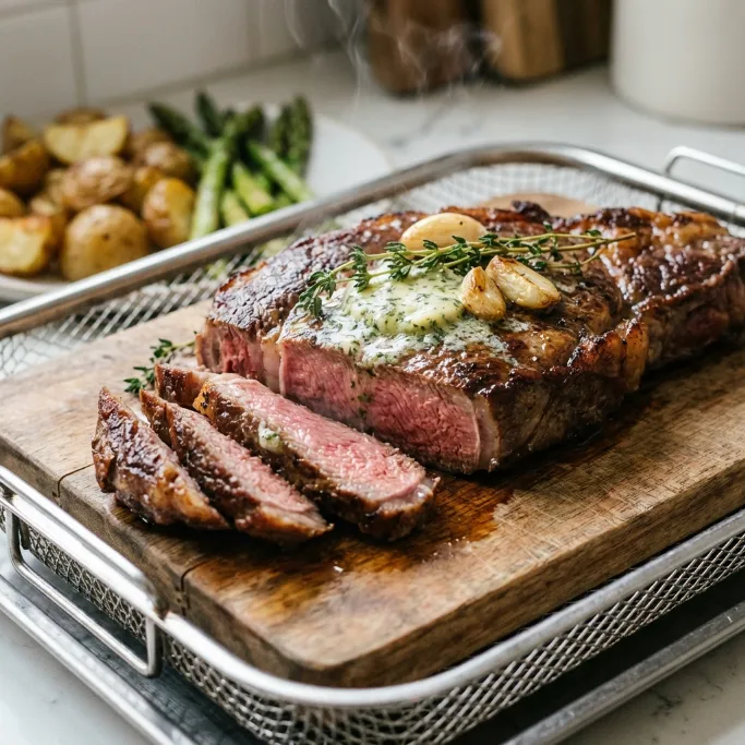 The base recipe works with any steak cut that’s at least an inch thick. Ribeye, New York strip, and T-bone all do well in the air fryer — the method is the same, though fattier cuts may need a slight timing adjustment since the additional marbling affects how quickly the interior comes to temperature.