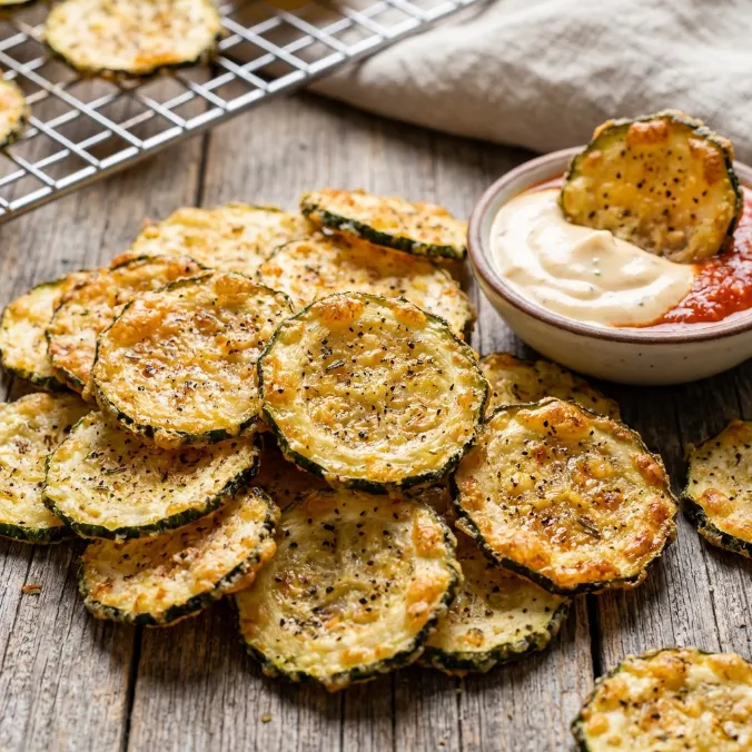 There is a particular kind of quiet satisfaction in turning something as simple as a single zucchini into a bowl of chips that disappears faster than you expected. It does not feel like health food while you are eating it. It feels like a real snack — crunchy, salty, warm, and just garlicky enough to keep reaching back into the bowl.